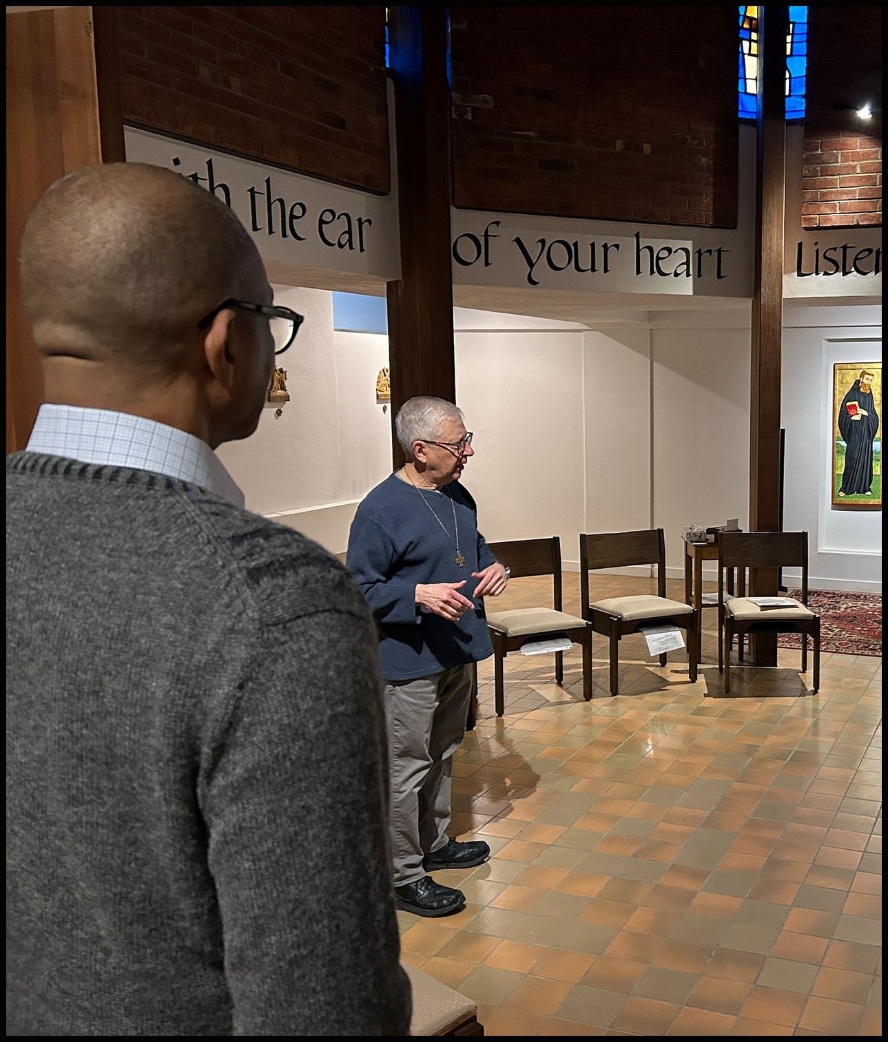 Br. Robert Leo Sevensky, OHC, shows the Board of Trustees around the monastery during their retreat.