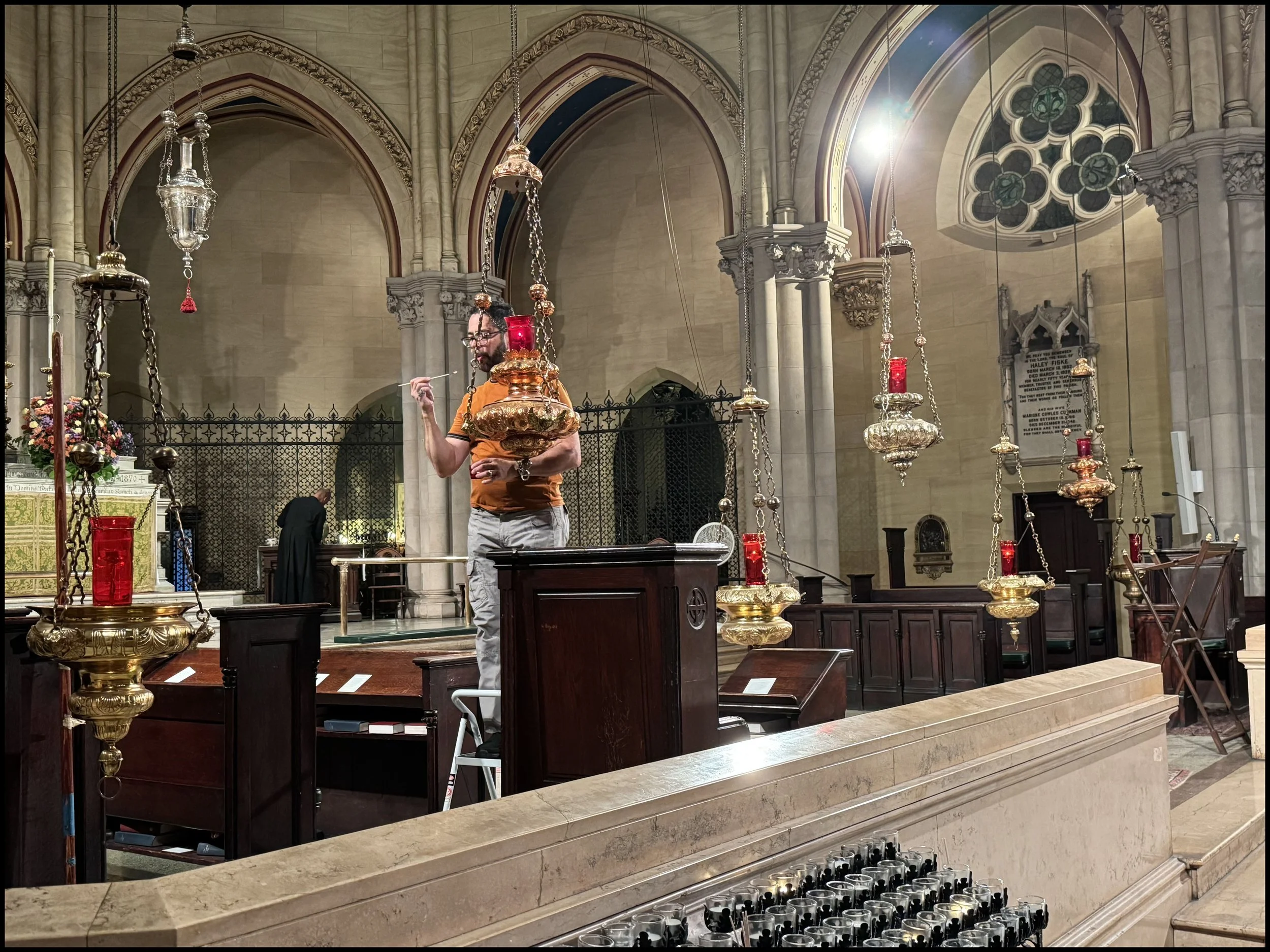Our weekend sexton, Mr. Marcos Orengo Roman, helps prepare the church on Sunday mornings before Solemn Mass.