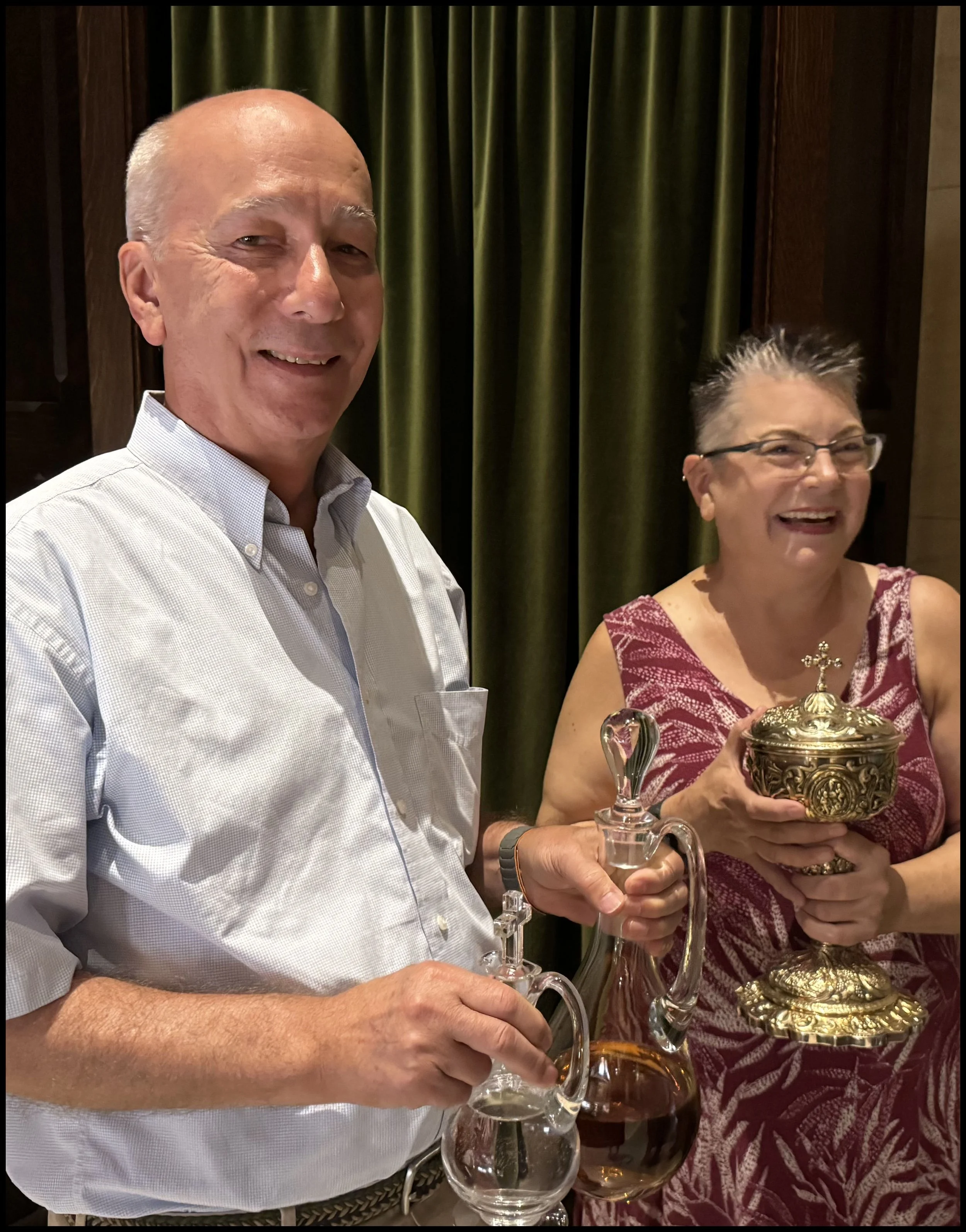 Mr. Steve Potanovic and Ms. Mary Robison prepare to bring forward the gifts of bread, wine, and water.