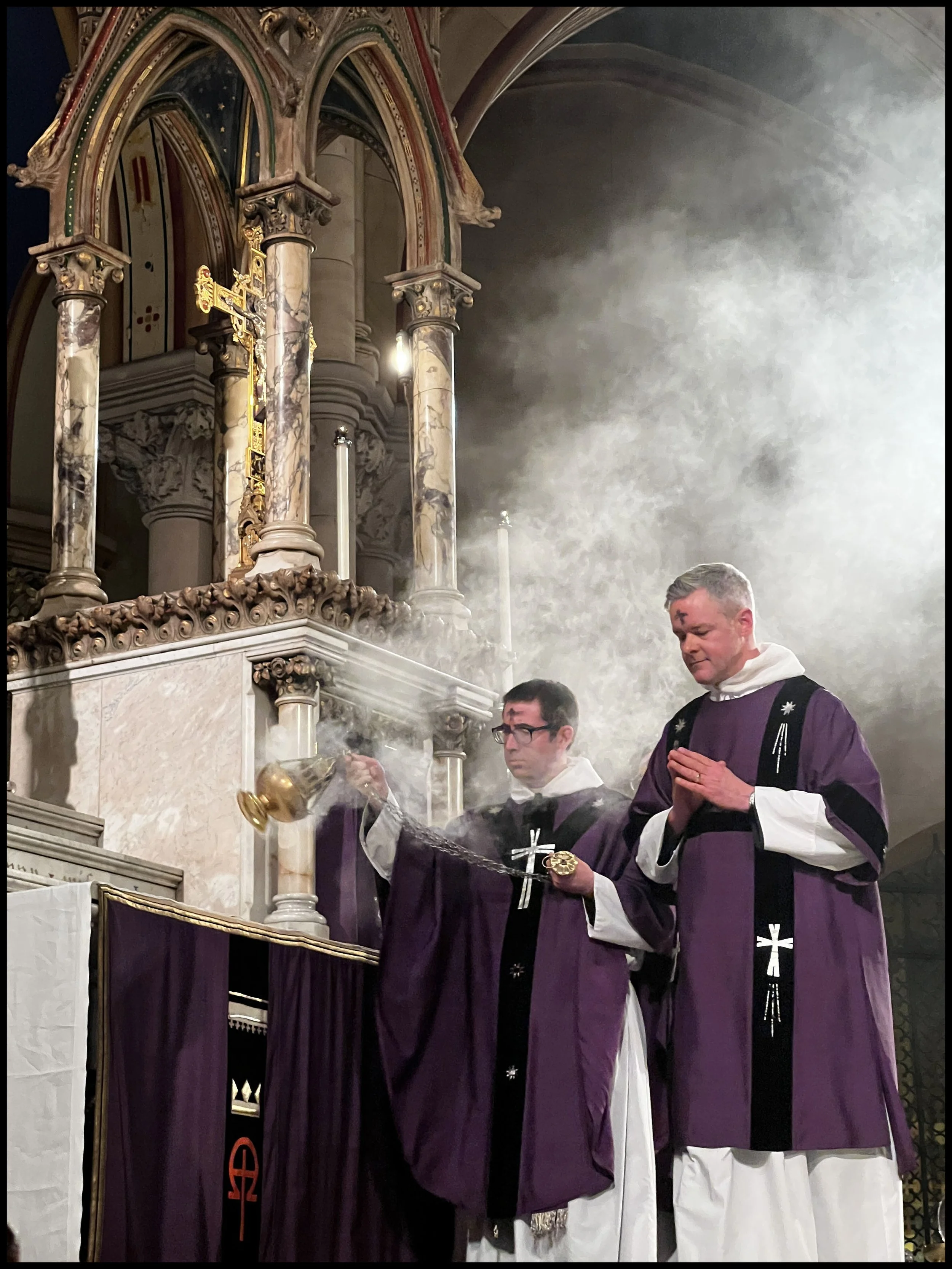 Fr. Matt censes the altar on Ash Wednesday. Mr. Clark Mitchell, subdeacon, assists.