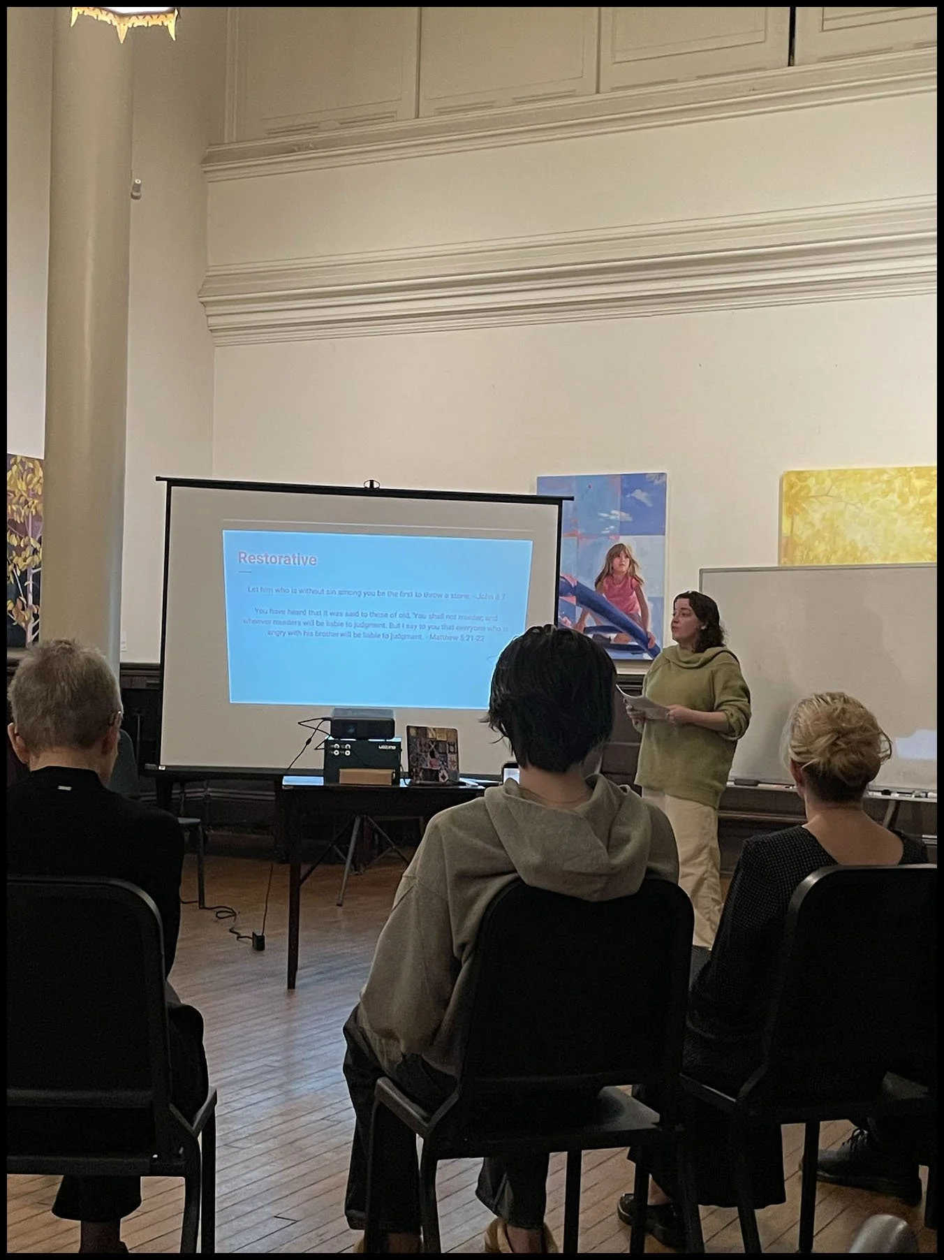 Ms. Elizabeth Wood talked about her experience in a program to provide university-level courses to women in prison at Adult Formation.